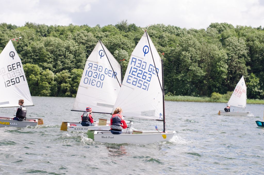 Bei strömendem Regen aber konstantem Wind trafen sich am Samstag vier Optisegler der fortgeschrittenen Optigruppen aus dem LSV und dem SCH und ein Laser-Segler am Schanzenberg. Glücklicherweise wurde es trockener, bevor wir uns im Schlepp auf den Weg zur Kreismeisterschaft des Kreises Herzogtum Lauenburg nach Ratzeburg begaben. Nachdem wir in Ratzeburg die Optis aufgeriggt hatten, ging es zur ersten von drei Tageswettfahrten auf den See. Nach einem sehr guten ersten Start lagen Juli, Ida und Linus nach der Startkreuz an der Tonne eins in Führung, was die Motivation für die weiteren Wettfahrten ansteigen ließ. Die erste Wettfahrt gewann Juli gefolgt von Ida. Linus erreichte in dieser Wettfahrt einen fünften Platz und Vincent vom SCH wurde achter. Nik, der zum ersten Mal im Laser 4.7 segelte, gewann in der Yardstickwertung von Europe und Laser .