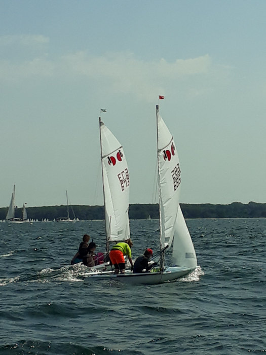 Das Training, bei dem wir bei den beiden Trainerinnen aus Malente (SVMG) und Wedel-Schulau (SVWS) mitmachen durften, war sehr hilfreich, da wir so vor den Wettfahrten schon auf der Ostsee segeln konnten. Am Mittwoch hatten wir „trainingsfrei“ und ich habe den ganzen Tag im See verbracht.