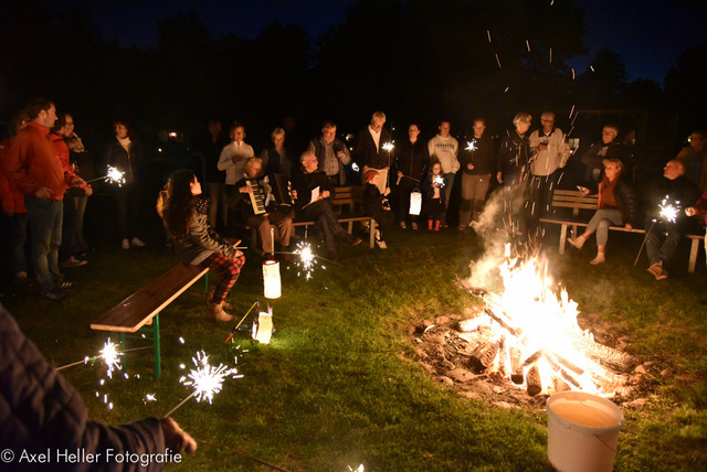 Danach fand sich alles am Lagerfeuer wieder, wo noch einige Lieder gesungen wurden. Alle hielten Wunderkerzen in den Händen. Bis spät in den Abend wurde dann wieder bei Oktoberfestbier, welches es in sich hatte, gefeiert.