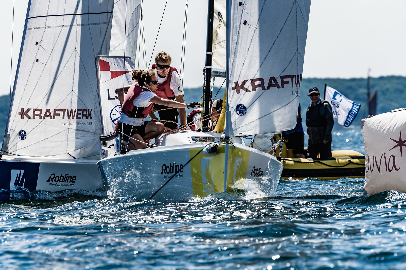 Bei leichten Winden kam das LSV Team bestehend aus Janne Schult, Nick Kössling, Niklas Reisenauer und Sönke Boy nicht recht in Fahrt, konnte aber immerhin in den wenigen Rennen mit mehr Wind andeuten, dass das Starkwind-Training sich doch gelohnt hat. Mit einem abschließenden 14. Platz ist das Team zwar nicht zufrieden, aber nicht auf einer Abstiegsposition.