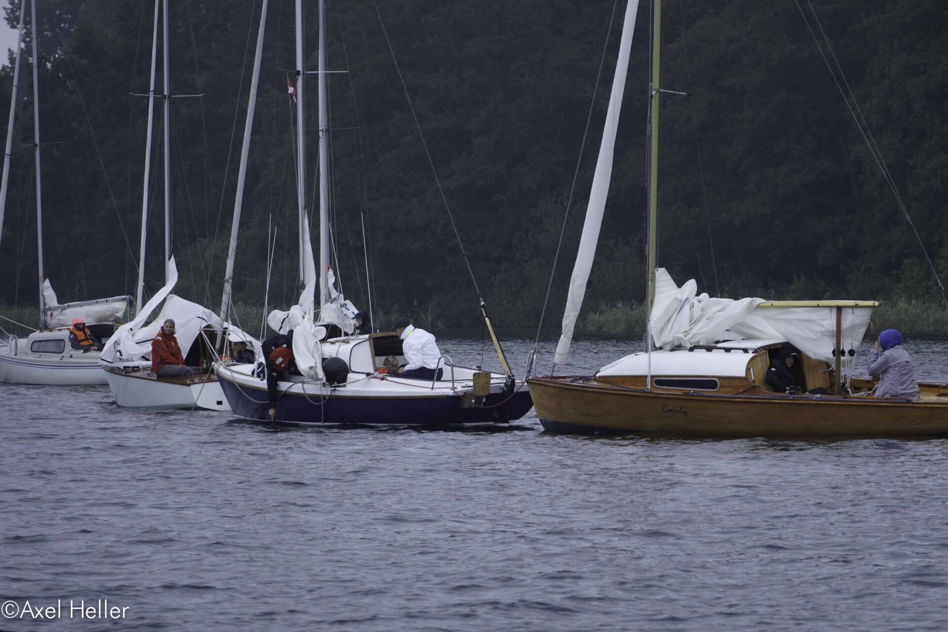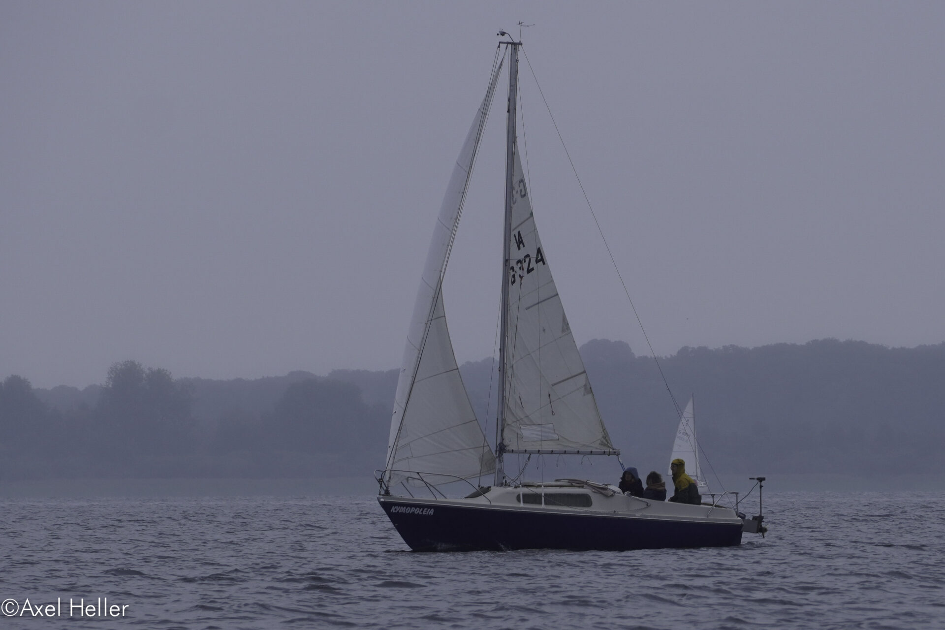 Nachdem wir gut gestärkt waren, ging es vorm Wind wieder zurück. Wer auf dem Hinweg lange genug getrödelt hatte, hatte bei wenig Wind auf dem Rückweg gute Chancen, eine möglichst gleiche Zeit zu fahren. Dies gelang einigen Booten bis auf wenige Sekunden! Gewonnen hat Sybille Wulf mit ihrem Enkel, die auf die Sekunde genau ins Ziel kamen. Für jedes Boot gab es wie in den Vorjahren einen Kalender. Abends hatten wir trotz bereits herbstlicher Temperaturen noch einen sehr geselligen Abend an der Gurke. Jan hatte ausnahmsweise einmal frei und konnte sich von Tina und mir bewirten lassen.
