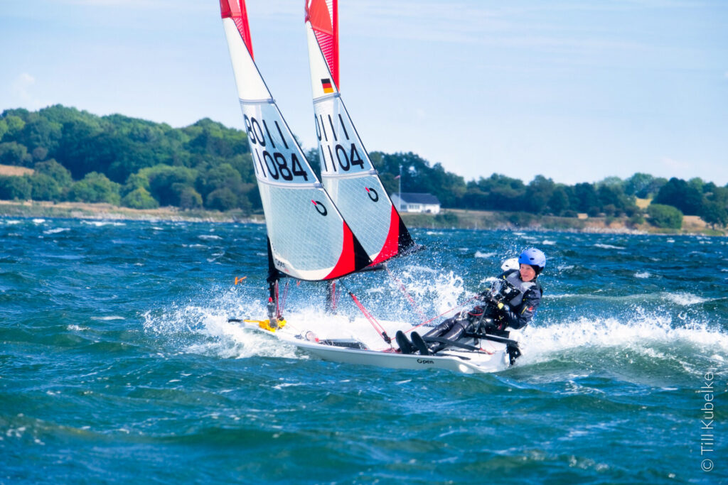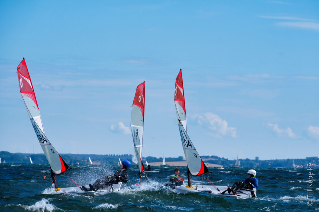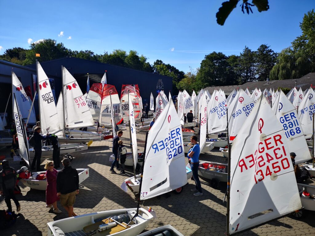 Früh aufstehen mag ich gar nicht gerne – erst recht nicht am Wochenende. Daher war ich sehr froh, dass Papa und ich schon am Freitag nach Flensburg gefahren sind und dort in einem Hotel übernachtet haben. So konnten wir am Samstag ein wenig länger schlafen, konnten in Ruhe im Hotel frühstücken und brauchten dann nur noch ein paar Minuten bis nach Glücksburg zum FSC Gelände fahren. Dort fand nämlich die Landesjugendmeisterschaft Schleswig-Holstein in den Klassen Opti A + B, Teeny, 420er, ILCA 4 + 6, Pirat und Open Skiff statt.