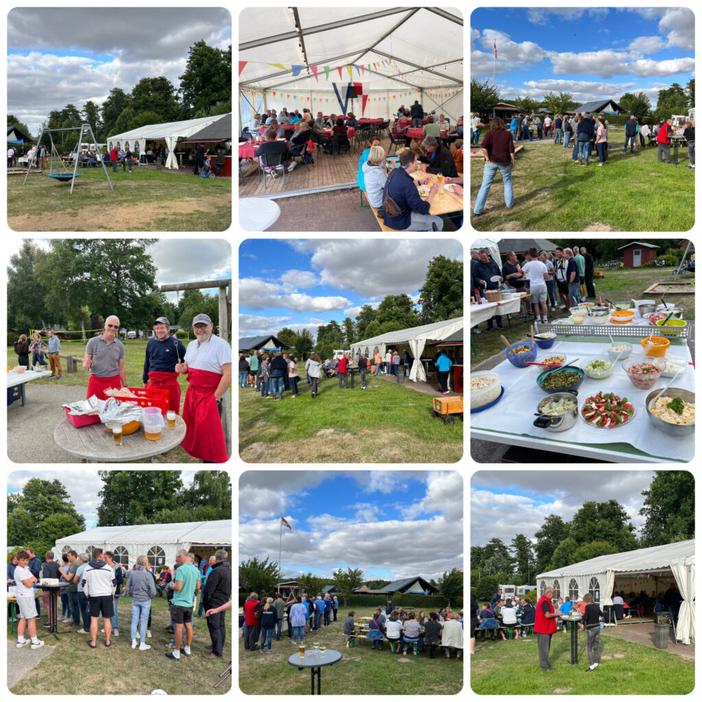 Nach 2 Jahren Pause konnte dann am Samstagabend auch endlich wieder zusammen gegessen, gesessen, geschnackt und sogar etwas getanzt werden und es kamen trotz eher nicht-sommerlichen Temperaturen über 100 Segler/innen und Gäste zusammen. Ein bombastisches Salat- und Nachtischbuffet sowie schmackhaftes vom Grill von unseren Grillmeistern rundeten den wirklich schönen Abend ab!