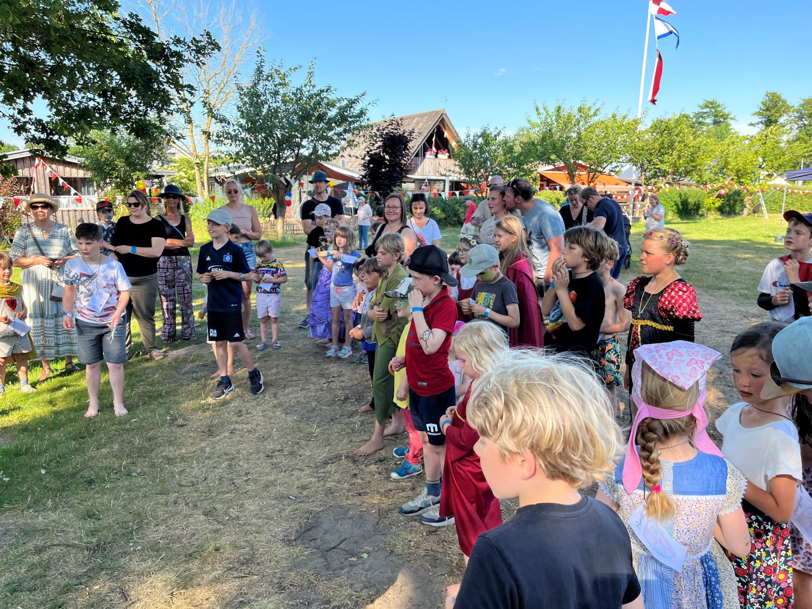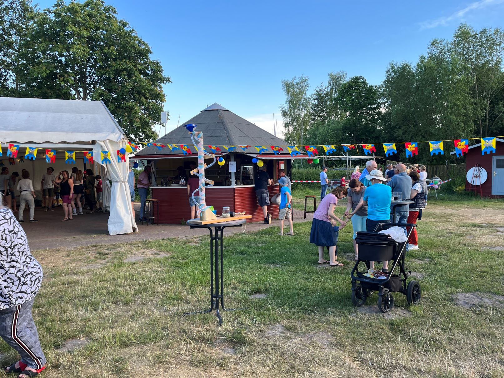 Am Vormittag hatten viele Mitstreiter und helfende Hände beide Vereinsgelände in fröhlich geschmückte Feststätten verwandelt. Um 15 Uhr konnten die Festlichkeiten dann mit einem kleinen Festumzug begleitet durch Barbara und ihr Akkordeon, der Begrüßung und einer reich gedeckten Kaffeetafel für Jung und Alt beim SCH beginnen. Frisch gestärkt machten sich die kleinen Burgbewohner anschließend an die zahlreichen Spiele auf dem Platz. Es wurde gebastelt, geschminkt, Kirschen geangelt, balanciert, Schätze gesucht, Fische geangelt, Schiffe wurden gewickelt, Bälle geworfen und vieles mehr, bevor dann am Abend der Umzug zum LSV erfolgte. Hier fand zunächst die heißersehnte Preisverteilung für die aktiven Kinder statt und danach das gemeinsame Essen vom Grill mit köstlichem Salatbuffet. Der schöne Festtag klang mit einer gut besuchten Kinder Disco, Bogenschießen, vielen netten Gesprächen an der Gurke und auf der Tanzfläche aus.