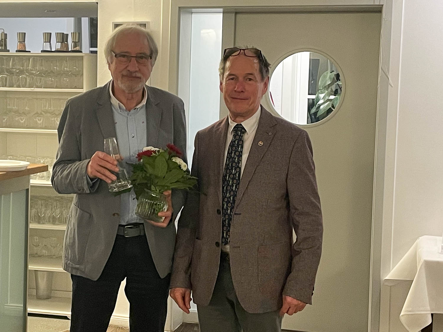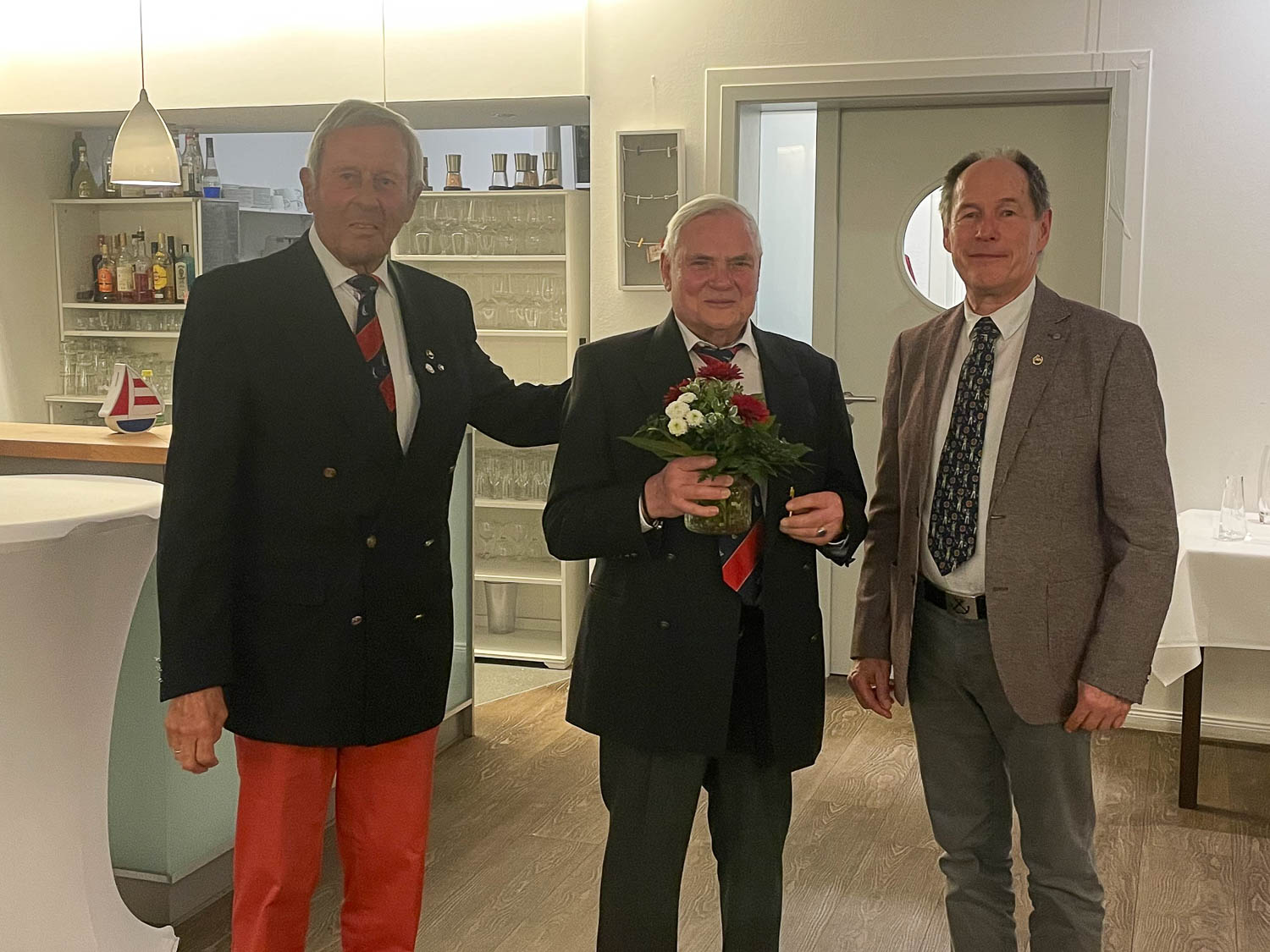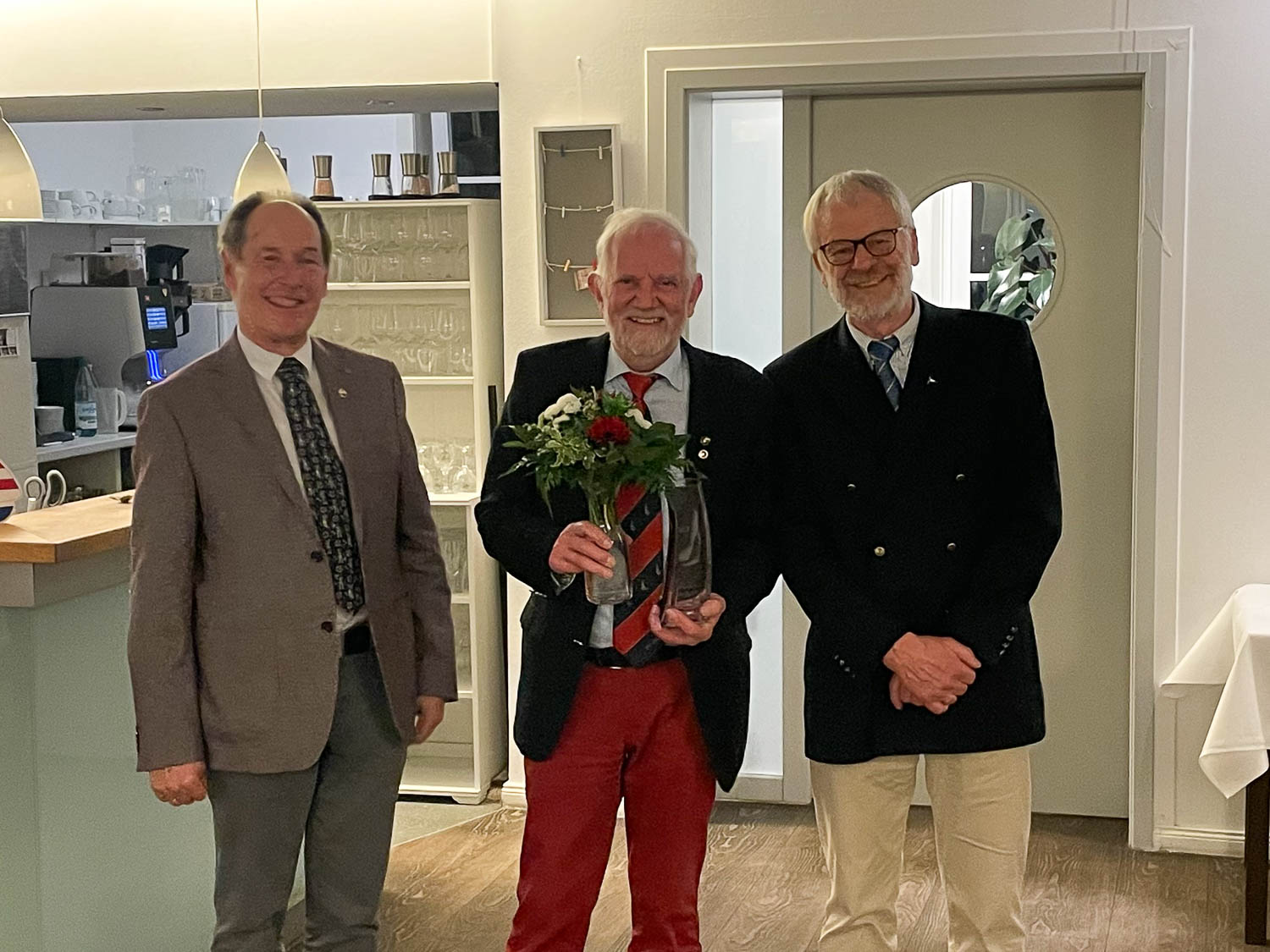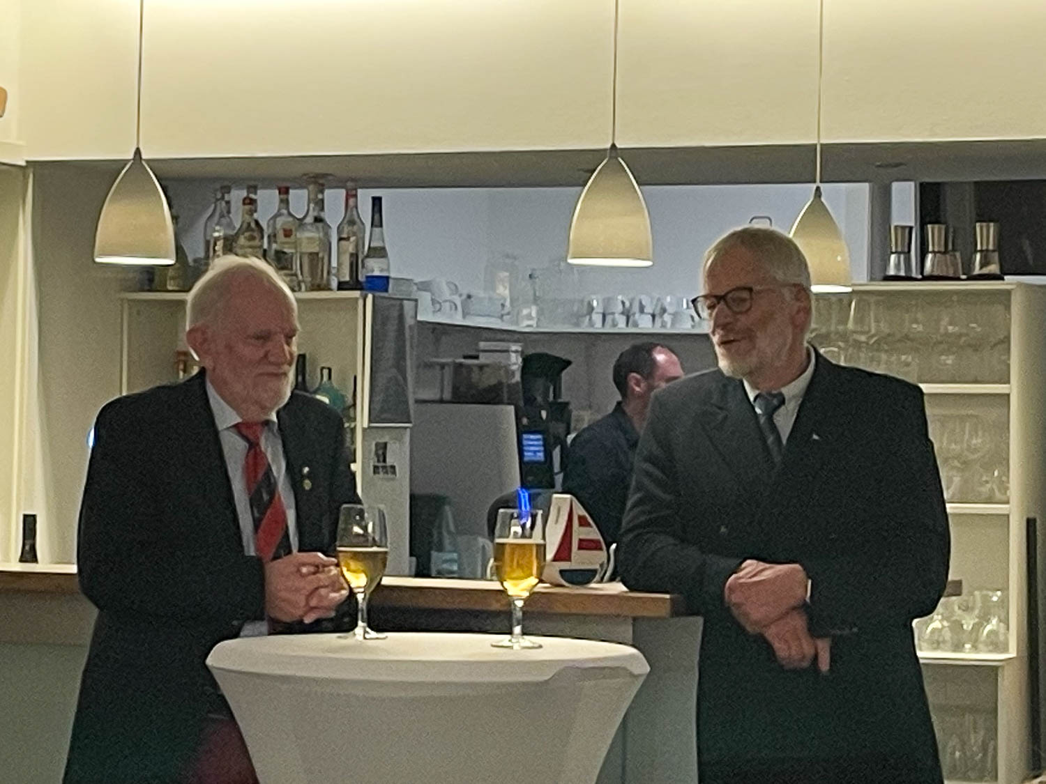 Michael Westfehling und Hans Christian Otto wurden im Rahmen des Abends für ihre 60-jährige Mitgliedschaft beglückwünscht. Als langjähriger Wegbegleiter hielt Meno Bülow die Laudatio für Michael. Wie Meno wuchs auch Michael rund um das Bootshaus an der Wakenitz auf. Den Einstieg ins aktive Segeln machte Michael im Alter von 12 Jahren auf dem Puschen. In den Folgejahren taten es Michael insbesondere auch Jollenkreuzer an. Unter anderem holte er 1976 einen fünften Platz im 20er mit Peter und Uwe an den Ratzeburger See. Noch heute hält diese Leidenschaft mit dem eignen 15er Jollenkreuzer mit traditionellem Holzrumpf und -rigg. Insbesondere für dein Engagement als Bootshauswart seit 1987 möchten wir dir als Verein herzlich danken.