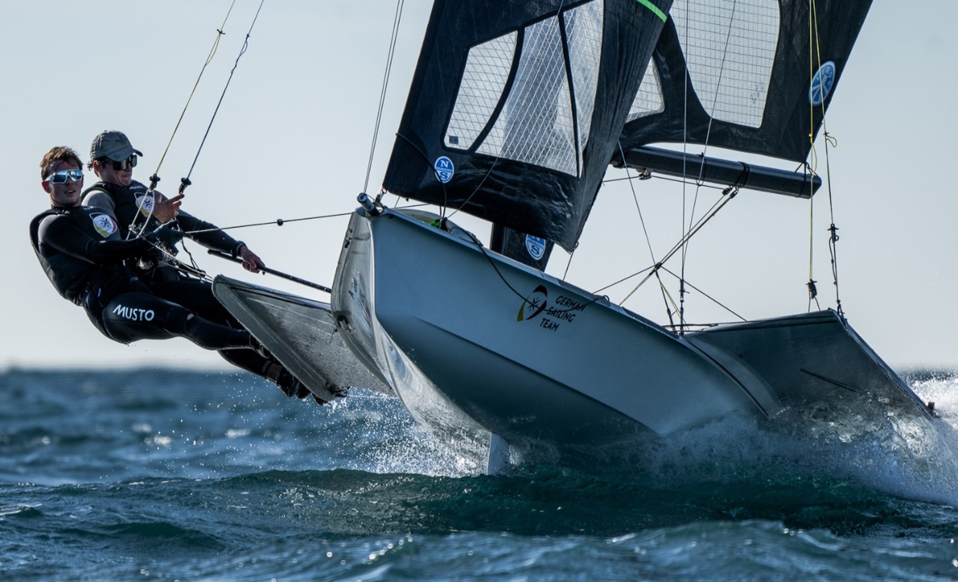 Das Jahr 2024 startete für uns auf Lanzarote. Wir haben bewusst diesen Ort als Trainingsrevier für den Winter gewählt, da wir dort konstant starken Wind und große Wellen erwarten konnten. In diesen Bedingungen hatten wir großen Nachholbedarf und konnten so wirklich jeden Tag intensiv daran arbeiten. Des Weiteren war es auch das Revier für den ersten Wettkampf des Jahres. Die Senioren Weltmeisterschaft im 49er. Das erste Mal für uns mit den ganz Großen „kämpfen“. Das Feld war besonders so kurz vor den olympischen Spielen natürlich sehr stark besetzt und dementsprechend wurden kleinere Fehler besonders hart bestraft. Nichtsdestotrotz konnten wir ein paar Top 10 Ergebnisse einfahren.