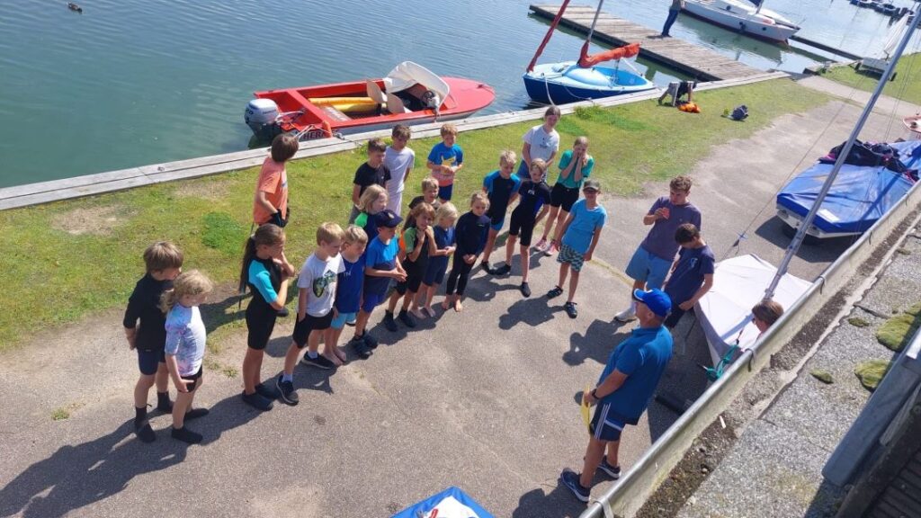 Am Dienstag war für den Nachmittag ein Gewitter angesagt. Das Alternativprogramm an Land war bereits geplant: vormittags nochmal segeln und nach dem Mittag sollten Knoten und die Begriffe der Bootsteile auf dem Programm stehen. Nach dem Mittag war jedoch klar, dass weiter gesegelt werden konnte. Das Gewitter ließ sich noch Zeit. Theorie und Knoten konnten somit auf einen späteren Zeitpunkt verschoben werden. Neben den Optis konnten auch zwei Piraten gesegelt werden, die durch Mieke, Lotta, Nike und Aaron begleitet wurden. Die vier erfahrenen Jugendsegler erklärten dem Nachwuchs hierbei, wie die Boote funktionieren.