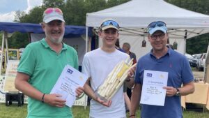 Die Pokalübergabe / Preisverteilung erfolgte im Rahmen des Spargelfestes auf Lödings Bauernhof durch den amtierenden „Spargel-Herzog“ ,sodass Nick auf das eingeplante Siegerküsschen der Spargelkönigen verzichtete…