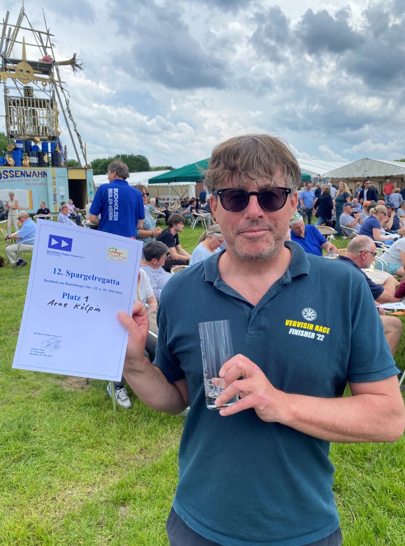 Holger und Sigrid belegten in der Yardstick-Gruppe 4 den zweiten Platz . Arne gewinnt in der Yardstick-Gruppe 3 mit den Plätzen zwei und eins . Wir gewinnen mit zwei Rennsiegen die Yardstick-Gruppe 1 und darüber hinaus den Spargelpokal !