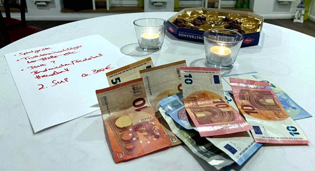 Aus dem Vorjahr klingelten in der Kasse noch 150,00 EURO. Nach anregender Diskussion haben wir uns mehrstimmig für ein doppelt so teures zweites SUP Board für unseren Verein entschieden. Wir haben gesammelt und: es kann gekauft werden. Margittas mitgebrachte Gedichtbücher und Karten brachten über 30,00 EURO ein, die sie für Jugendarbeit und SUP board spendet. Danke dafür. Es ist wunderbar, wenn alles so harmonisch und gut gelaunt geplant wird. Das ist an diesem Abend gelungen.