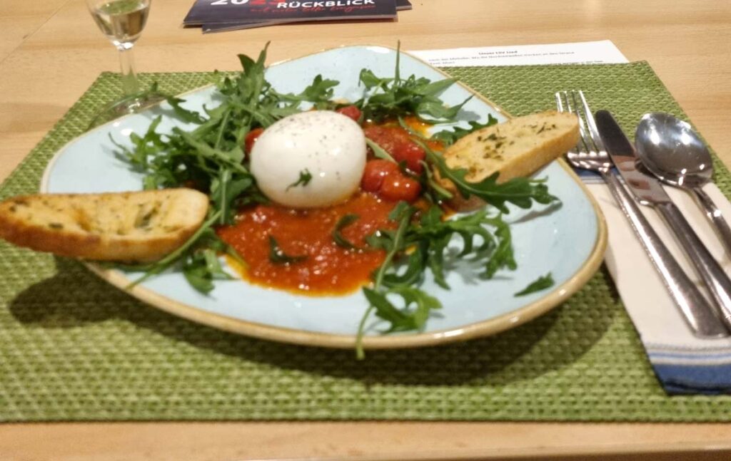Das I-Tüpfelchen kam aus der Küche: „Burrata auf Tomatensugo dazu Olivenbaguette“! So köstlich gesättigt, musste natürlich unsere LSV-Hymne gesungen werden. Nach Karaoke Musik. Das Akkordeon war leider krank. Bei unserem anschließenden Spiel, sich nach Größe aufzustellen, wurde kräftig gemogelt. Niemand wollte kleiner sein als die andere.