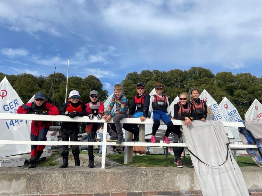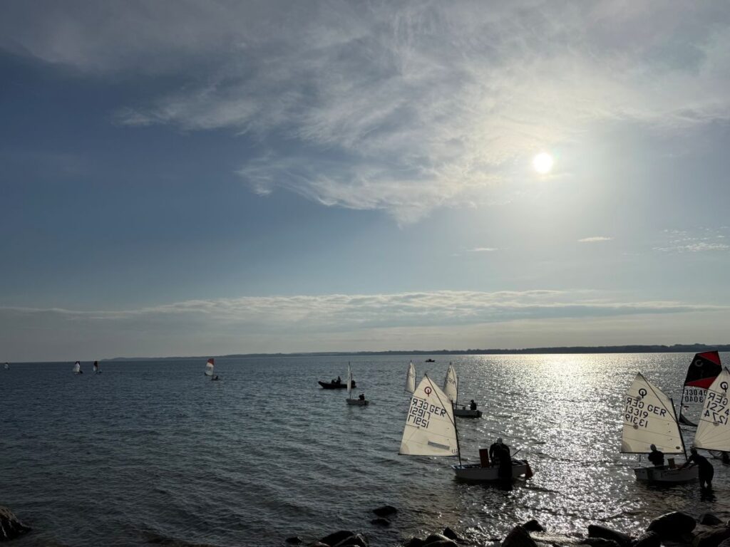 Am Samstagmorgen begann alles sehr entspannt. Die Steuerleutebesprechung war um 10 Uhr am Mövenstein. Vorher haben wir unsere Boote aufgebaut, doch da wir unsere Boote bereits abgeladen hatten, ging das Aufbauen schnell. Wir sind dann gegen 11 Uhr rausgefahren, während Schimi das Motorboot geholt hat. Insgesamt sind circa 20 Kinder bei den Opti A gestartet und 22 Kinder in der B-Gruppe. Vom LSV waren wir neun Teilnehmer. Nachdem die Wettfahrtleitung erst zehn Minuten vor dem Start die Starttonne ausgelegt hatte, war um zwölf Uhr der erste Start bei relativ wenig Wind. Ich segelte nach dem Start vorne mit, aber nach dem Vorwindkurs schoben sich auf der zweiten Kreuz noch einige vor mich. In der zweiten Wettfahrt hatte ich ein Problem mit der Schot und musste aufgeben.