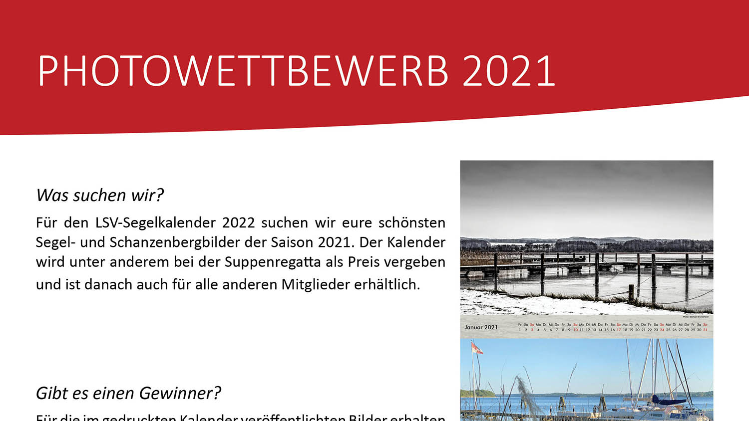 Für den LSV-Segelkalender 2022 suchen wir eure schönsten Segel- und Schanzenbergbilder der Saison 2021. Der Kalender wird unter anderem bei der Suppenregatta als Preis vergeben und ist danach auch für alle anderen Mitglieder erhältlich.