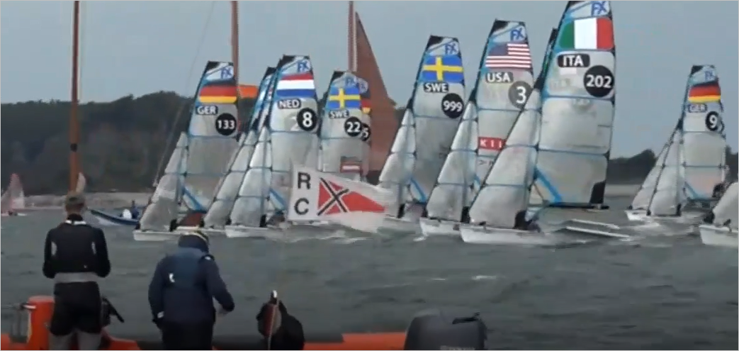 Nachdem bei den Juniorenmeisterschaften vor 2 Wochen der Wind noch recht schwach war, wehte es bei der Kieler Woche in diesem Jahr umso mehr. 51 vorwiegend Damenteams aus aller Welt waren nach Kiel gereist, um endlich wieder Regatta zu segeln, darunter fast alle Top 10 der vergangenen zwei Weltmeisterschaften. Von 7 männlichen Nachwuchsteams schafften es 2 nach 7 Wettfahrten ins Goldfleet. Mit dabei Jesper und Mewes mit der Segelnummer 133; für die beiden schon ein riesen Teilerfolg. Am Samstag und Sonntag ging es dann in 6 weiteren Wettfahrten auf der Medienbahn vor Schilksee bei immer stärkerem Wind um die Plätze.
