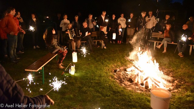 Am letzten Samstag fand wieder unser Laternen- und Oktoberfest statt. Zunächst stärkten sich alle bei einer zünftigen Sause, es gab wieder Leberkäse, Weißwürste und süßes Sauerkraut. Begleitet vom Akkordeon ging es dann über unser Gelände.