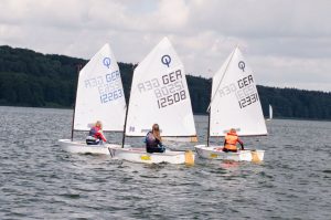 Bei strömendem Regen aber konstantem Wind trafen sich am Samstag vier Optisegler der fortgeschrittenen Optigruppen aus dem LSV und dem SCH und ein Laser-Segler am Schanzenberg. Glücklicherweise wurde es trockener, bevor wir uns im Schlepp auf den Weg zur Kreismeisterschaft des Kreises Herzogtum Lauenburg nach Ratzeburg begaben. Nachdem wir in Ratzeburg die Optis aufgeriggt hatten, ging es zur ersten von drei Tageswettfahrten auf den See. Nach einem sehr guten ersten Start lagen Juli, Ida und Linus nach der Startkreuz an der Tonne eins in Führung, was die Motivation für die weiteren Wettfahrten ansteigen ließ. Die erste Wettfahrt gewann Juli gefolgt von Ida. Linus erreichte in dieser Wettfahrt einen fünften Platz und Vincent vom SCH wurde achter. Nik, der zum ersten Mal im Laser 4.7 segelte, gewann in der Yardstickwertung von Europe und Laser .